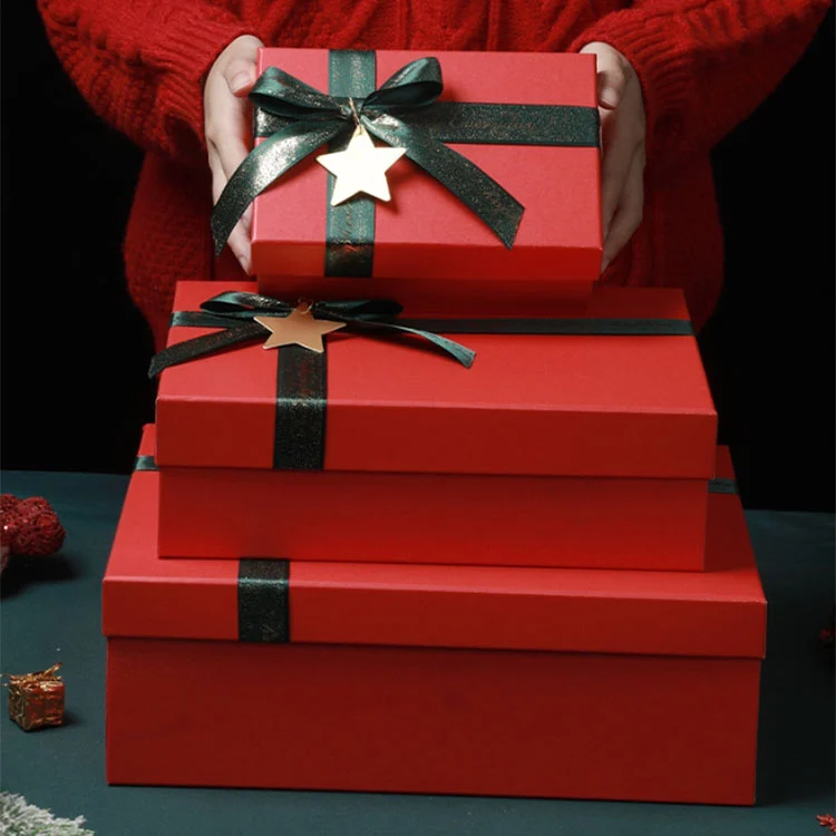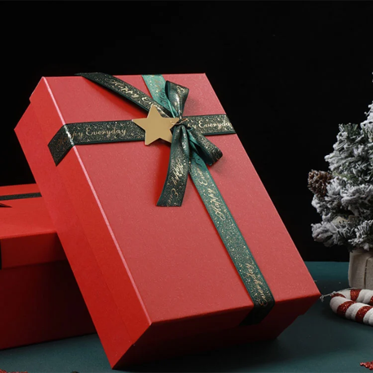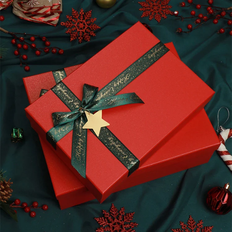| Nom du produit | Boîte-cadeau de Noël avec couvercle rigide et base avec ruban et breloque étoile |